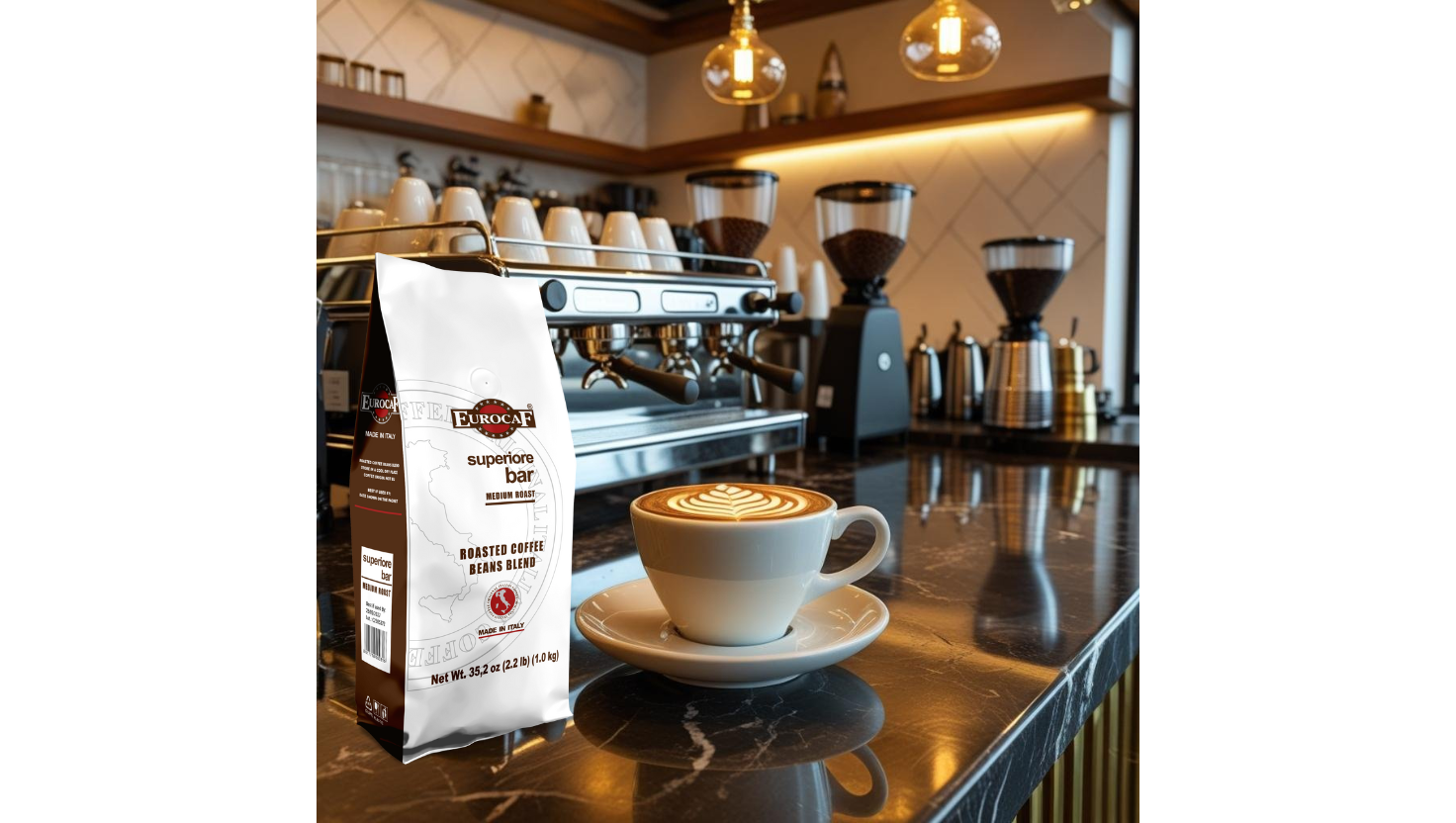 A fine coffee blend, ideal for professional use, coffee that brings out the cup giving it a creamy, persistent, full-bodied look. Rich aroma, rounded taste, fruity taste with the right amount of acidity with strong final notes of chocolate.