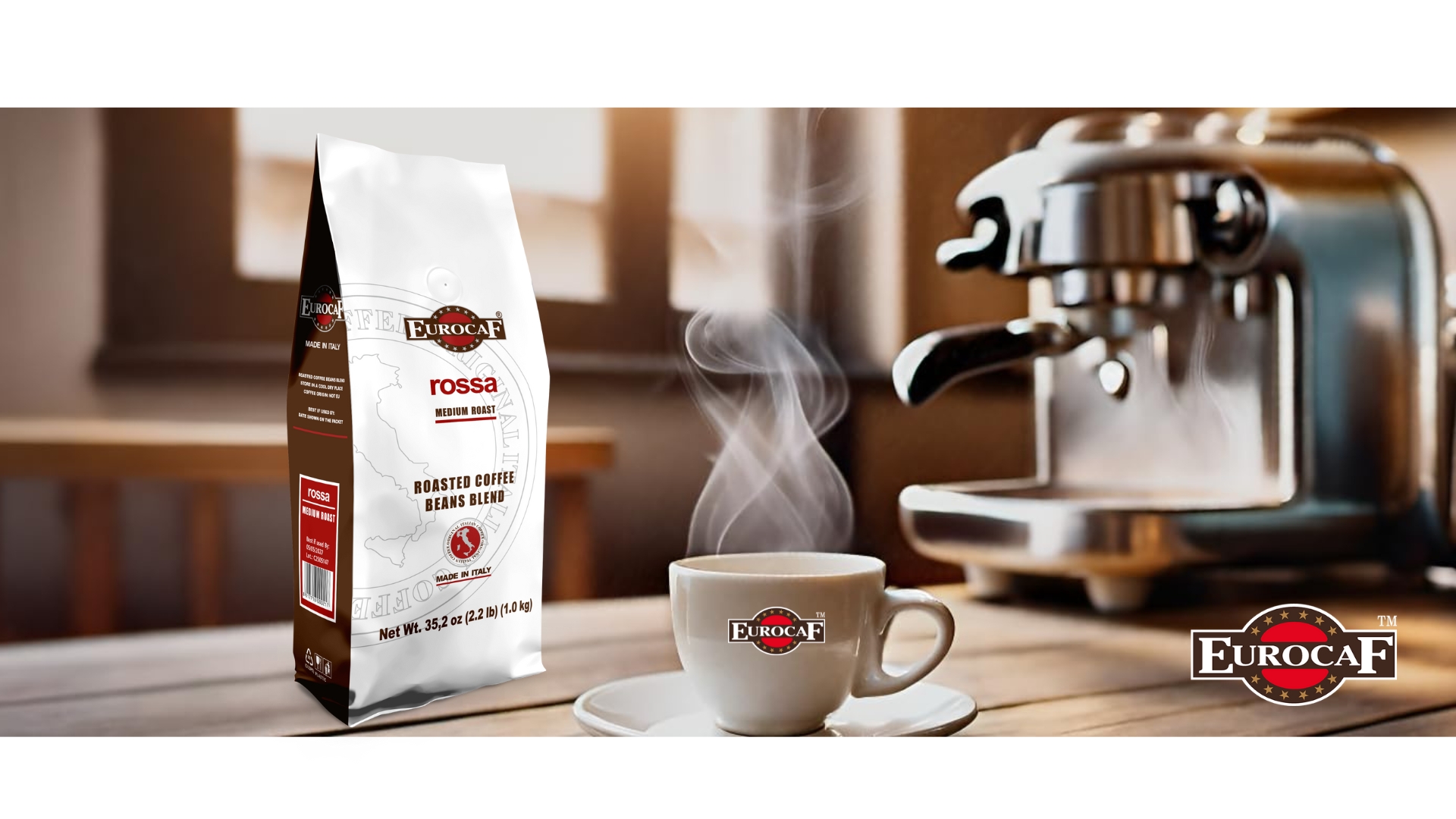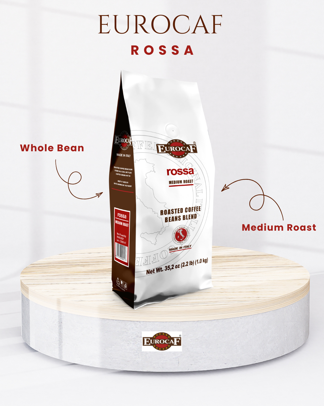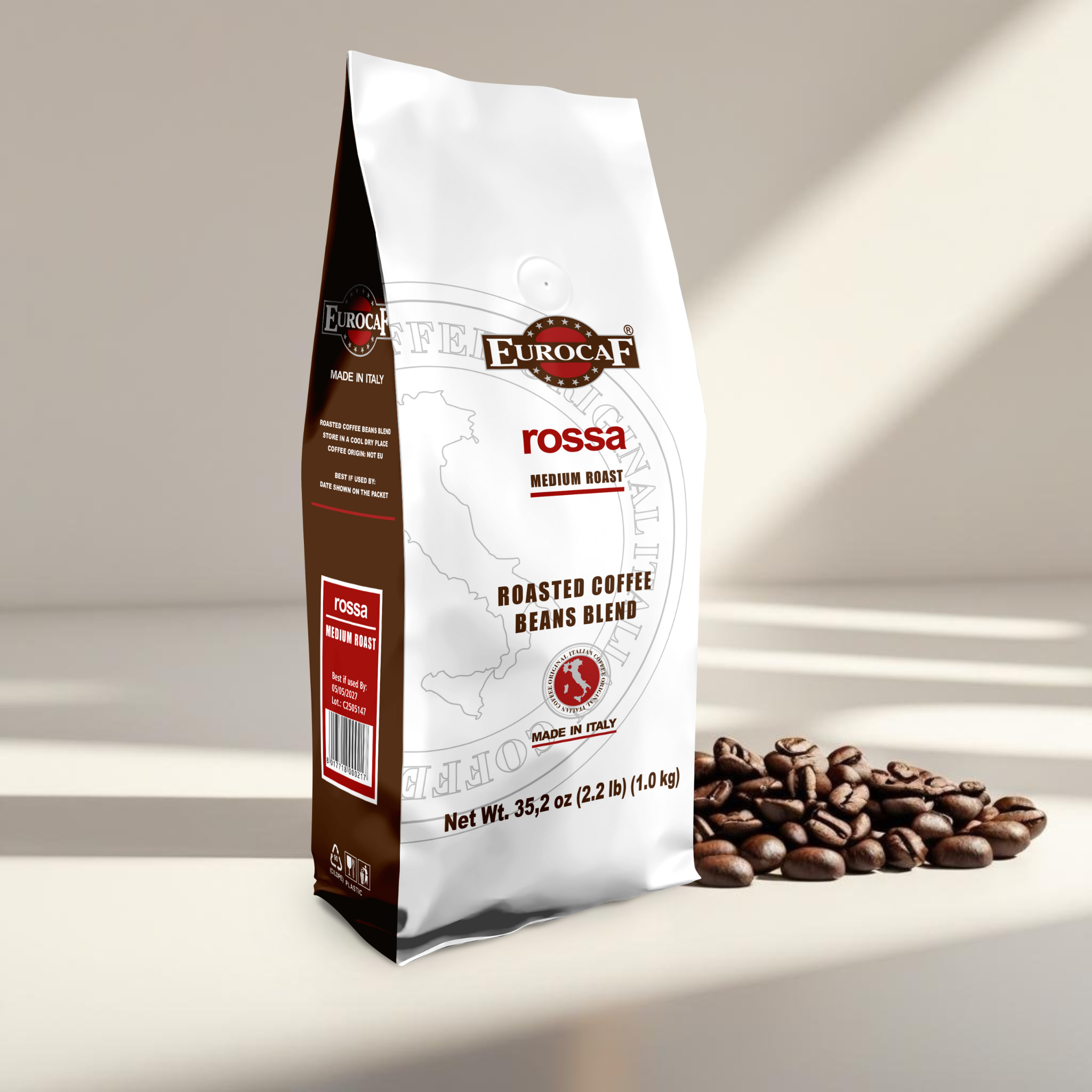 Eurocaf Miscela Rossa, Whole Bean Coffee, Medium Roast, 2.2 Pound, Original Italian Coffee, Blended and Roasted in Italy
